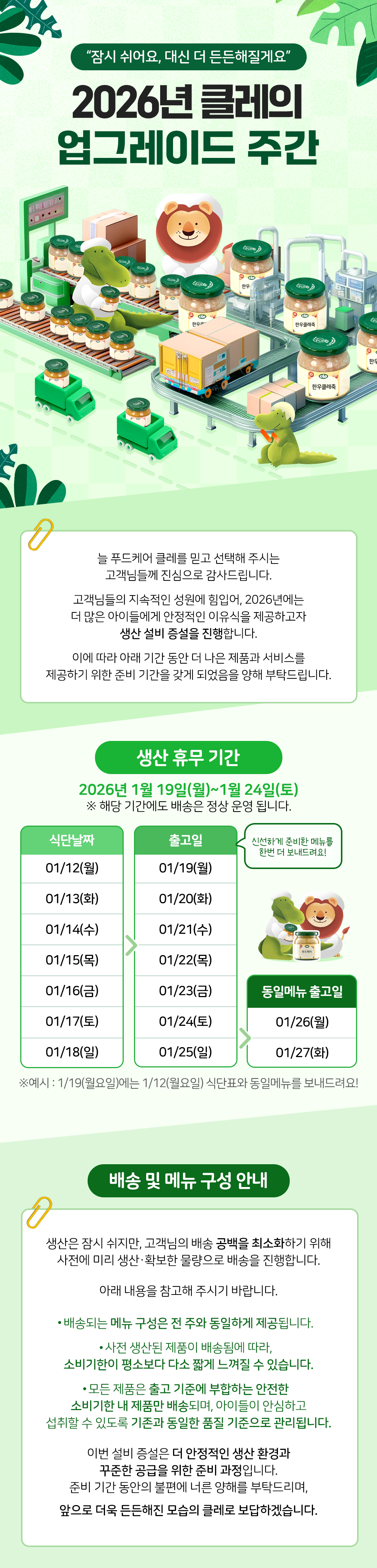 생산 휴무 기간 안내