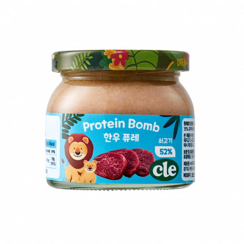 | 영양성분 | [한우퓨레]열량 350kcal, 나트륨 126mg(16%), 탄수화물 9g(6%), 당류 2g(4%), 지방 21.2g(71%), 트랜스지방 0g, 포화지방 8g, 콜레스테롤 83mg, 단백질 28g(80%) [닭가슴살퓨레]열량 206kcal, 나트륨 130mg(16%), 탄수화물 6g(4%), 당류 5g(10%), 지방 6.4g(21%), 트랜스지방 0g, 포화지방 3.6g, 콜레스테롤 80mg, 단백질 30g(86%) [병아리콩퓨레]열량 335kcal, 나트륨 92mg(11%), 탄수화물 45g(30%), 당류 4g(7%), 지방 9.9g(33%), 트랜스지방 0g, 포화지방 4.4g, 콜레스테롤 22mg, 단백질 16g(46%) |