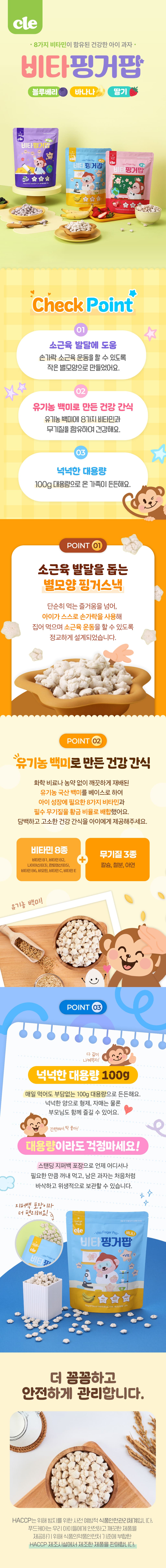 | 원재료명 및 함량 | [딸기] 유기농 백미(국산) 95.5%, 귀리(국산) 1.5%, 딸기분말(국산) 1.5%, 비타프로DR 1.5% [블루베리] 유기농 백미(국산) 95.5%, 귀리(국산) 1.5%, 블루베리분말(미국산) 1.5%, 비타프로DR 1.5% [바나나] 유기농 백미(국산) 95.5%, 귀리(국산) 1.5%, 바나나분말(필리핀산) 1.5%, 비타프로DR 1.5% |
