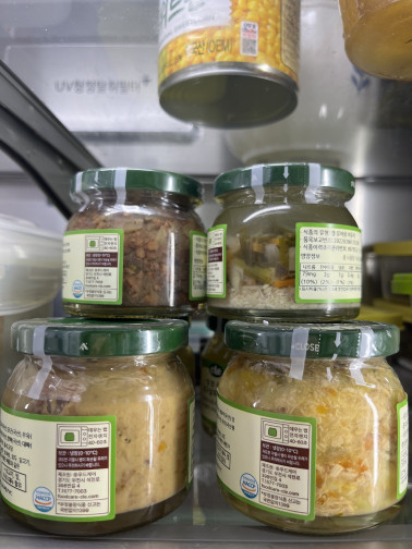 환경호르몬 정말 싫어해서 햇반도 안먹는데.. 일회용기에 담긴 이유식이 싫어 첫째는 오롯이 제 손으로 해 먹이다 병이유식이 있다기에 처음 체험해보고 아이가 너무 잘 먹기도하고 제가 먹어봐도 건강하게 맛있더라구요. 특히 건더기가 너무 실하고 고기들도 정말 많아요. (보통 다른 브랜드껀 고기 들어있다해도 간 고기들이 전부인데 여긴 장조림식으로 찢어진고기들이 많이있어 넘 좋아요. 꾸준히 이용할 것 같아요. 푸드케어가 이제 냉장고 쟁여탬이 되었네요ㅎㅎ